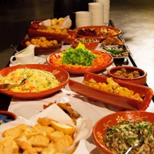 Entradas - Chamuça de Legumes, Rissol de Carne, Presunto Laminado, Nacos queijo, Broa de milho, Pão e Manteiga,